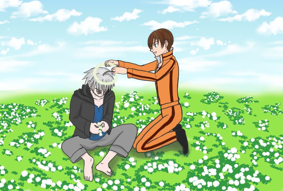 08 October 花畑 クローバー畑で花冠編むようなほのぼのとしたコバ花がみたいなーと。 花崎は意外と手先器用だと思うので編むの早そうだけど、 小林は結構大雑把な気がするので、手先でちまちまやるのは苦手そう。 みたいな妄想をしました!! ※クリックすると無駄に大きくなります。 PR